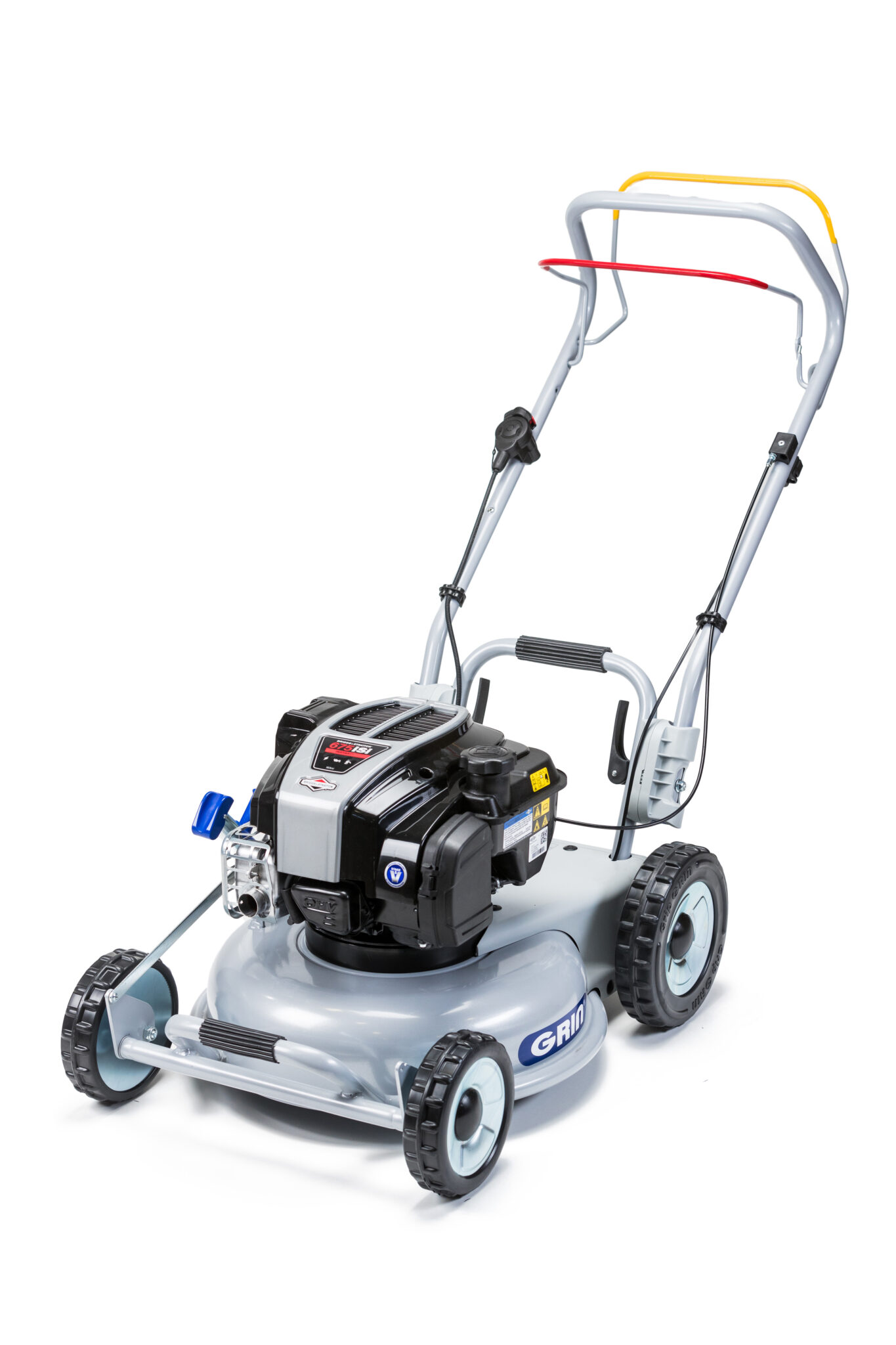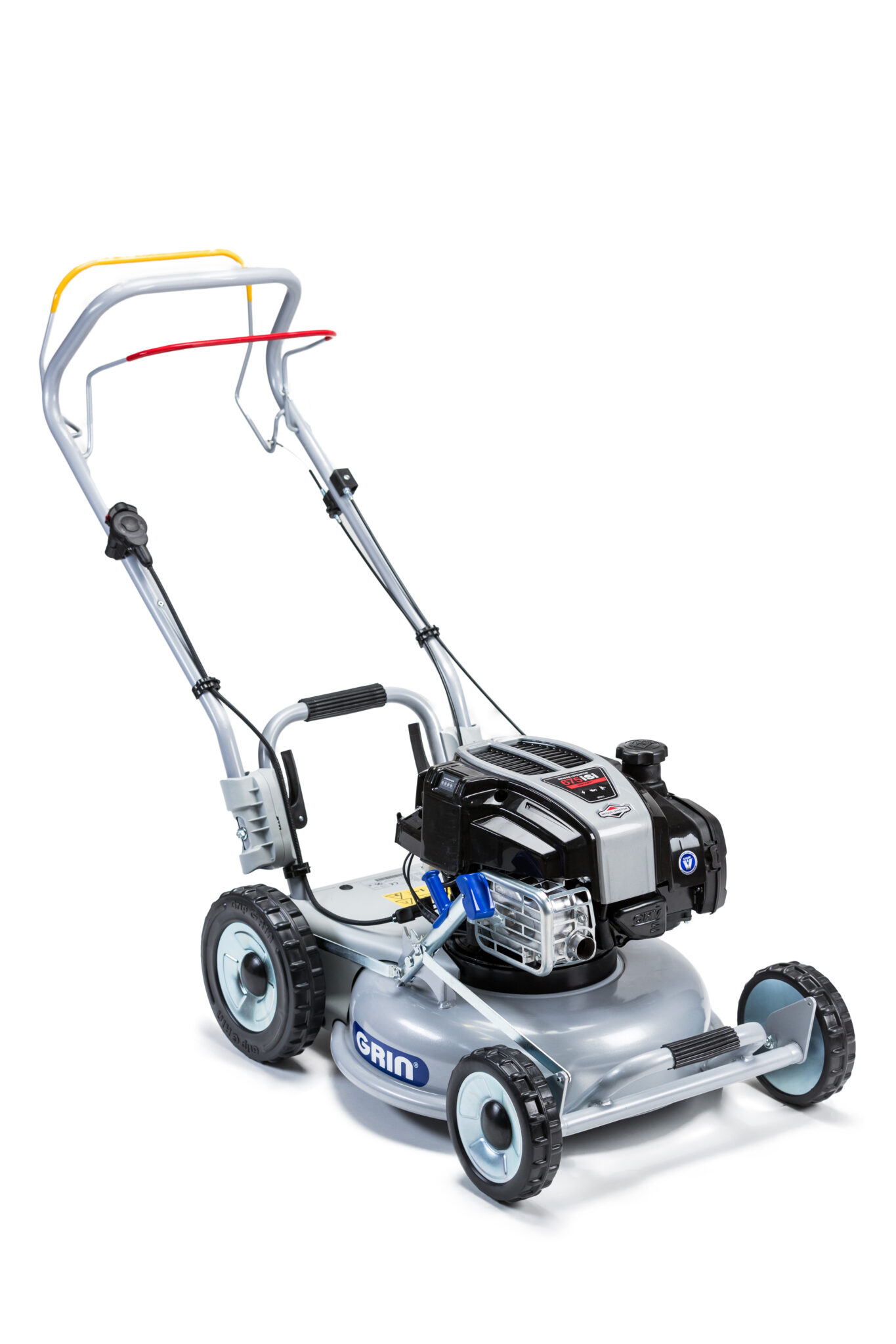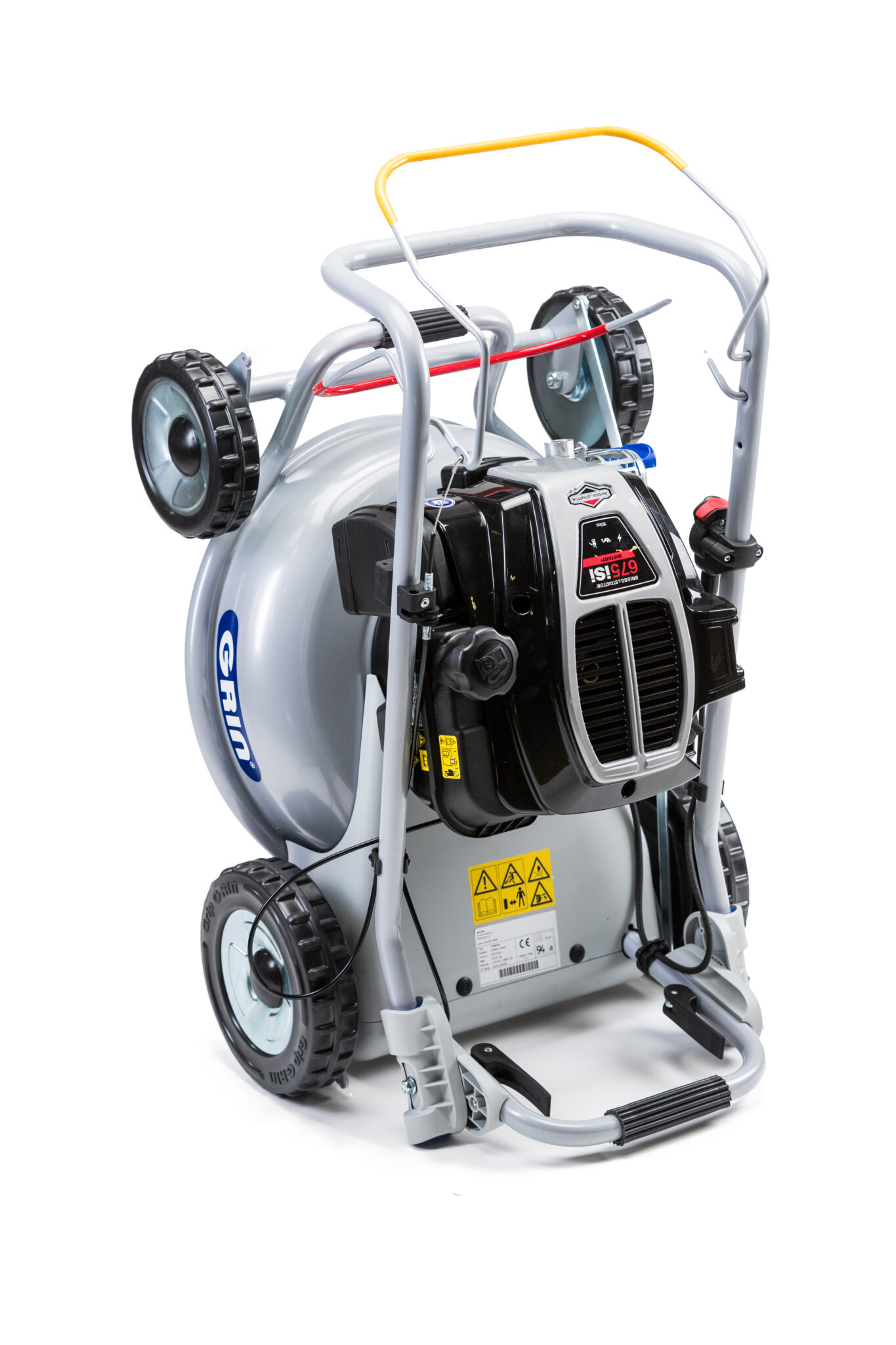 Der GRIN Rahmen verfügt über eine ergonomische, für den Transport geeignete Form, die die Manövrierfähigkeit des Mähers verbessert. Dank zwei Griffe ist es möglich, die Maschine einfach bei Treppen oder unbequemen Bereichen des Gartens anzuheben. Mit geklapptem Führungsholm passen die GRIN Rasenmäher auch in die kleineren Autos und können einfach transportiert werden.