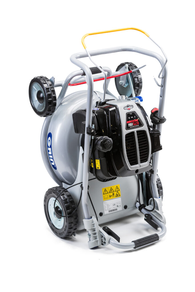 Die Rasenmäher mit Fangkorb sind gewöhnlich schwerer, besonders wenn der Fangkorb voller Gras ist. Der Antrieb ist daher notwendig ab 400 Qm bzw. auf leichtem Gefälle, um sie einfach zu manövrieren. Mit GRIN ist der Rasenmäher ohne Antrieb handlicher vor allem auf engem Raum. GRIN Schiebemäher sind bis 800 Qm und an Steigungen bis 10° empfohlen.
